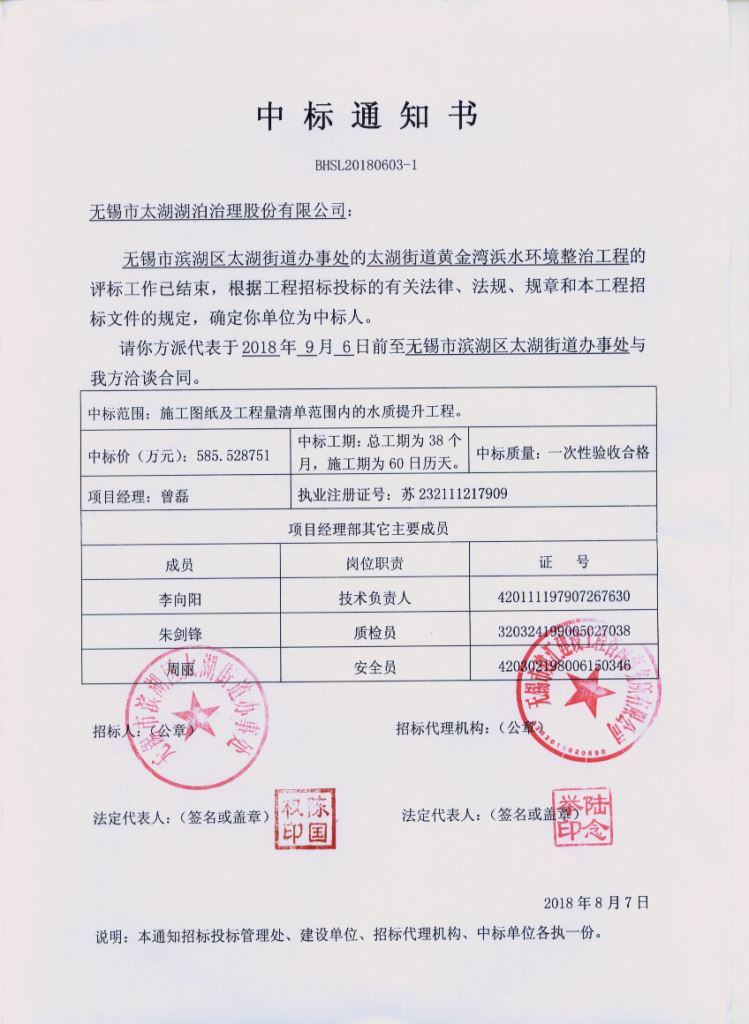 8月7日,同花顺官方网站在太湖街道黄金湾浜水环境整治工程投标阶段,凭借良好的市场信誉,成熟完善的投标方案,从众多竞争对手中脱颖而出,成功中标该项目,中标价585万元。